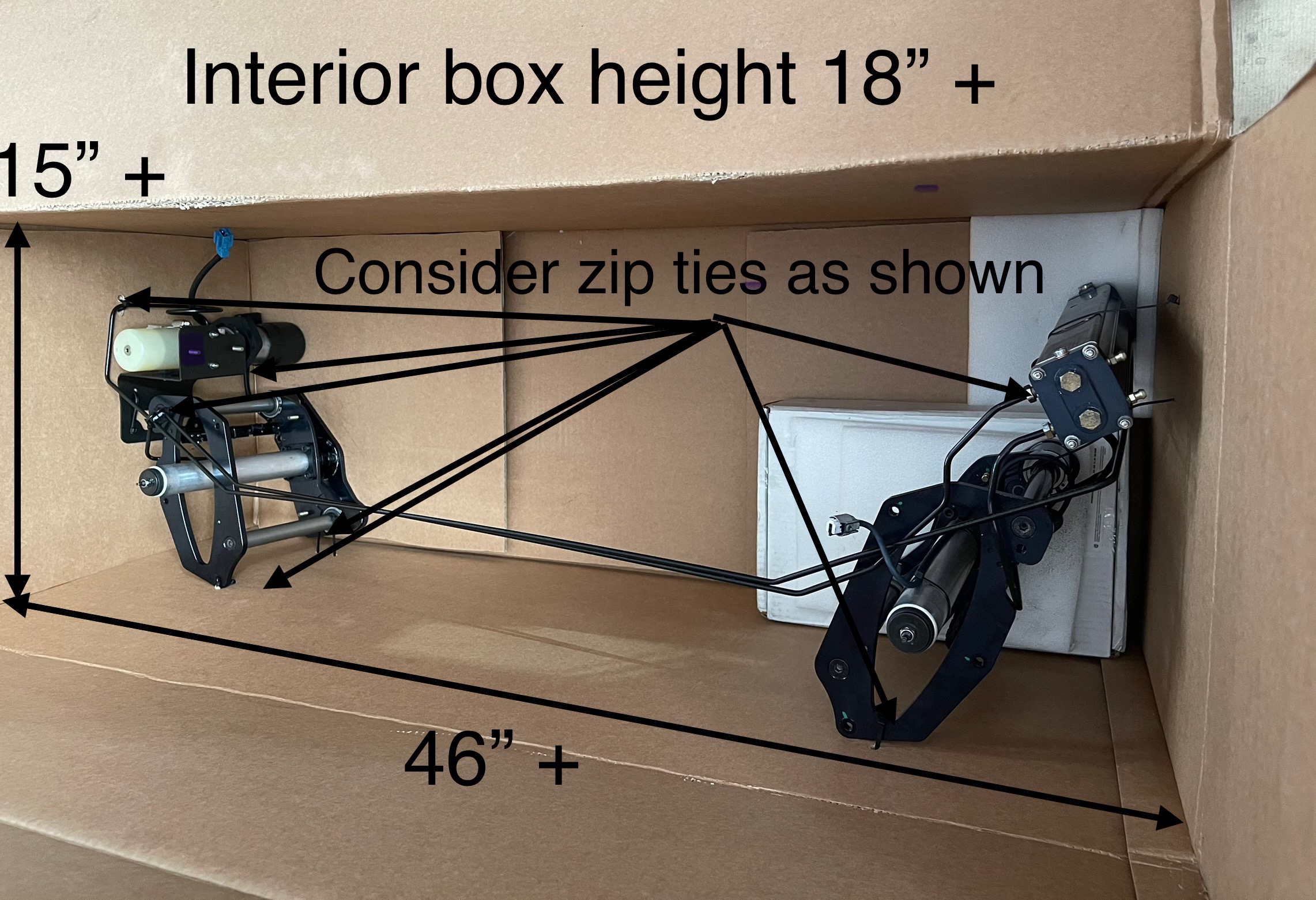 When shipping the system to us, we suggest that you customize your box such that it has a girth (length plus circumference) of less than 165 inches, so that UPS and FedEx Ground will accept it and you don't have to ship it via freight.